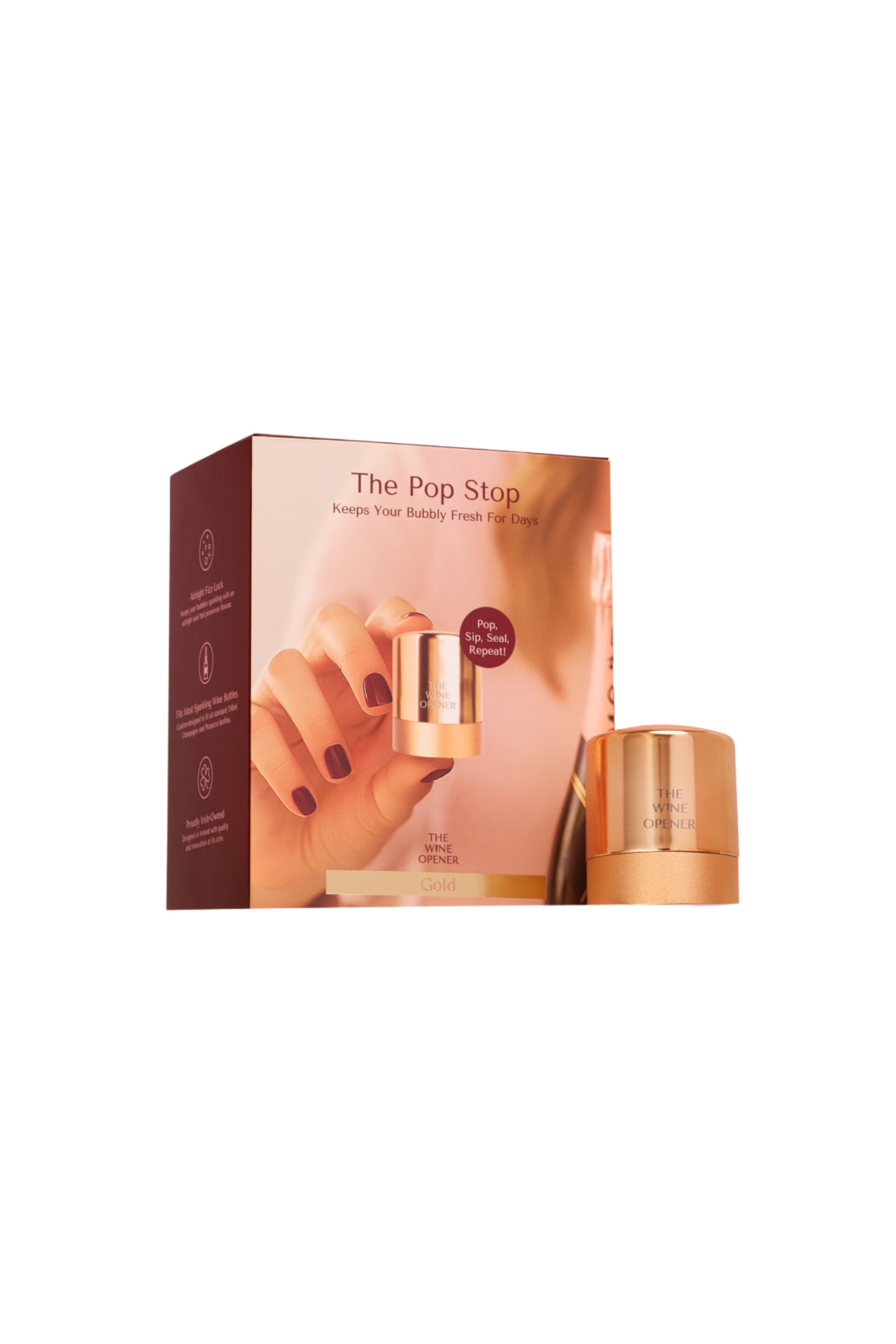 The Pop Stop, available in the same elegant gold and chrome finish as The Wine Opener, is the perfect companion to your wine ritual. While The Wine Opener takes care of your wine uncorking needs, the Pop Stop safeguards the freshness of your sparkling wine, preserving its effervescence and flavor for days. Together, they create the perfect duo to ensure your wine moments are always exceptional.